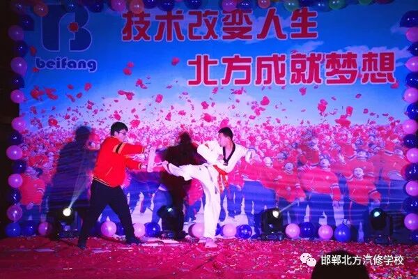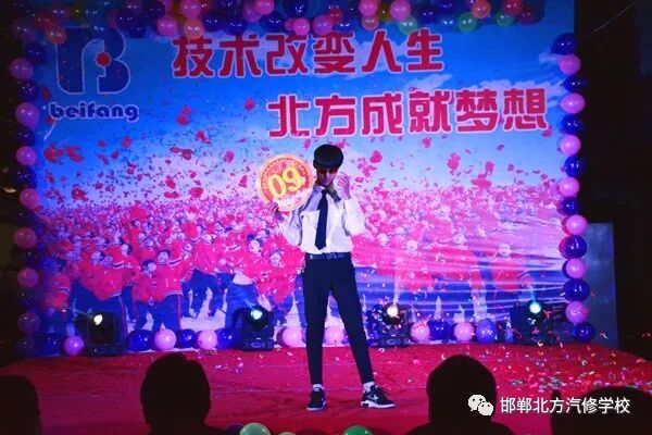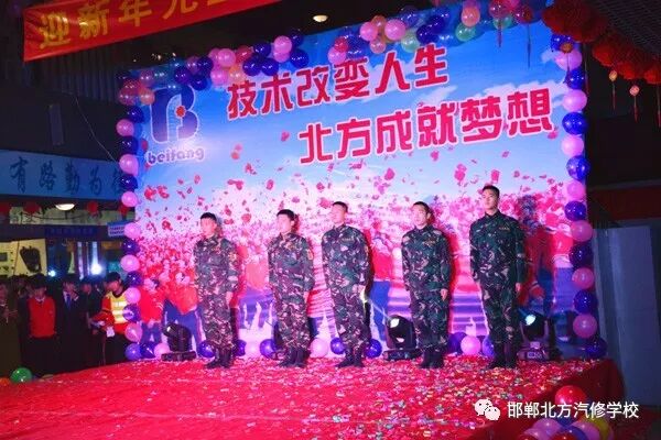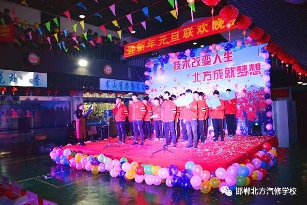 领 导 致 辞 晚会第一项由常务校长常双喜致新春贺词。常校长肯定了2017年全体教职工的工作,招生、教学、就业以及其他工作都圆满完成,并取得了预期的效果。尤其招生工作,邯郸北方更是整个集团第一。希望在2018这个新的一年中,北方的兄弟姐妹们能够以更加积极的工作热情和工作态度,来完成和超越以往我们取得的成绩。 邯 郸 北 方 学 校 元 旦 联 欢 晚 会 精 彩 瞬 间 联欢晚会 青春就要不一YOUNG!多日来,各班老师和同学们用自己的创意排练出了各类精彩的节目,为全校教职工献上了一台精彩纷呈的联欢晚会,给大家带去了无数的欢笑。晚会现场气氛非常热烈,高潮迭起,掌声不断。 此次精彩缤纷的联欢晚会全方位的展示了北方学子的良好精神面貌和自信风采,也为同学们提供了一个展现自我挑战自我的舞台。充分展示了邯郸北方学校优秀的教育成果,以及学生们的兴趣特长。既丰富了校园的文化生活,增进了师生的感情,又陶冶了情操。为弘扬邯郸北方的良好校风、学以致用的北方精神,贡献了应有的一份力量。